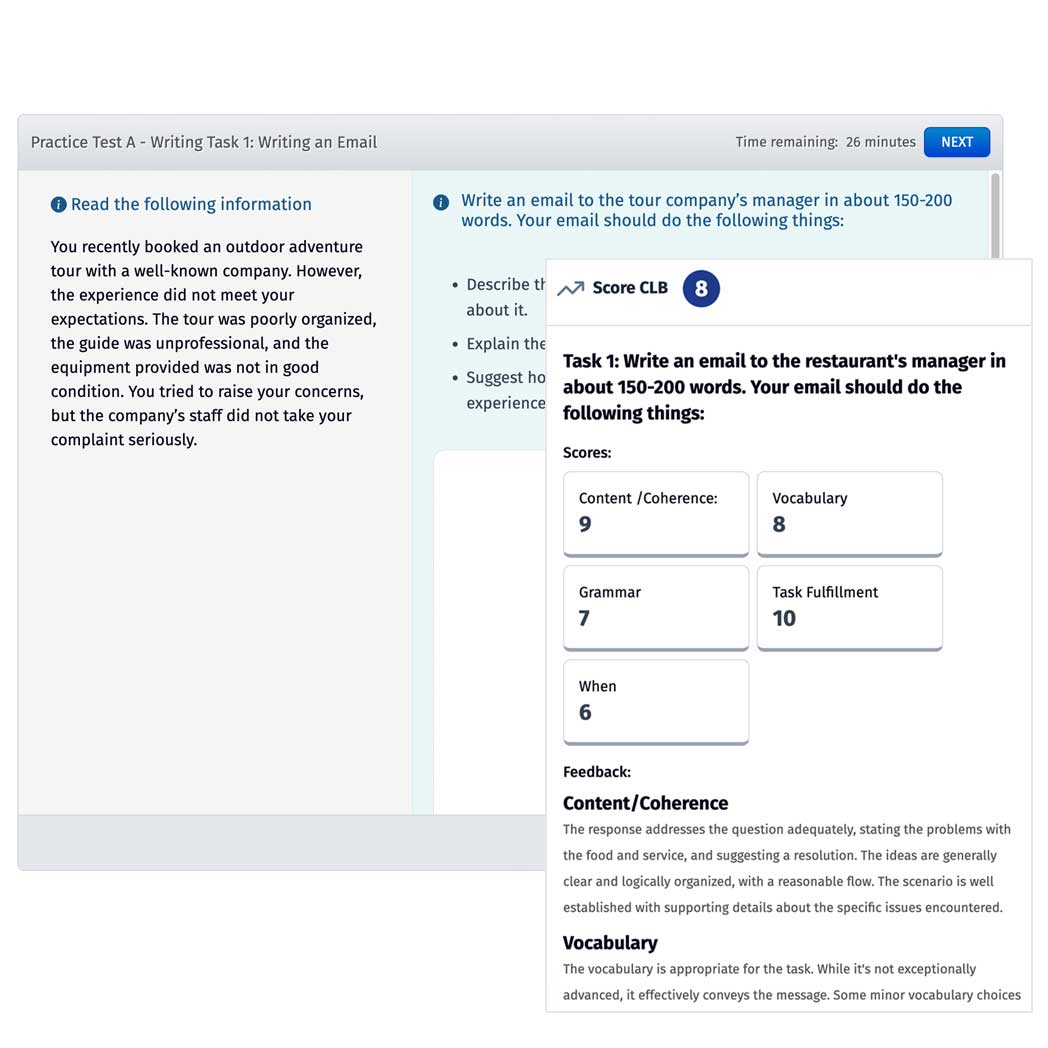 Enroll now for your 1-to-1 Class!Prepare Smarter, Score Higher! Our advanced Task-Based Writing Simulations replicate the CELPIP Writing section’s real-world challenges. Practice Task 1 (Email Writing) and Task 2 (Survey Response) with tools designed to boost your confidence and performance.